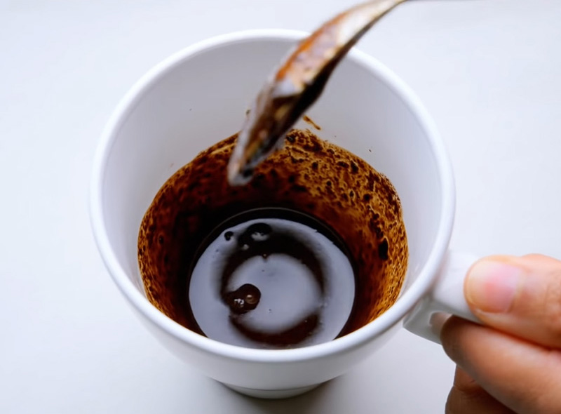 - Khuấy kỹ, đến khi thấy hỗn hợp cafe sệt và mịn