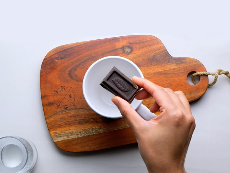 - Cho 20gram dark chocolate và 1 thìa đường vào chén nhỏ