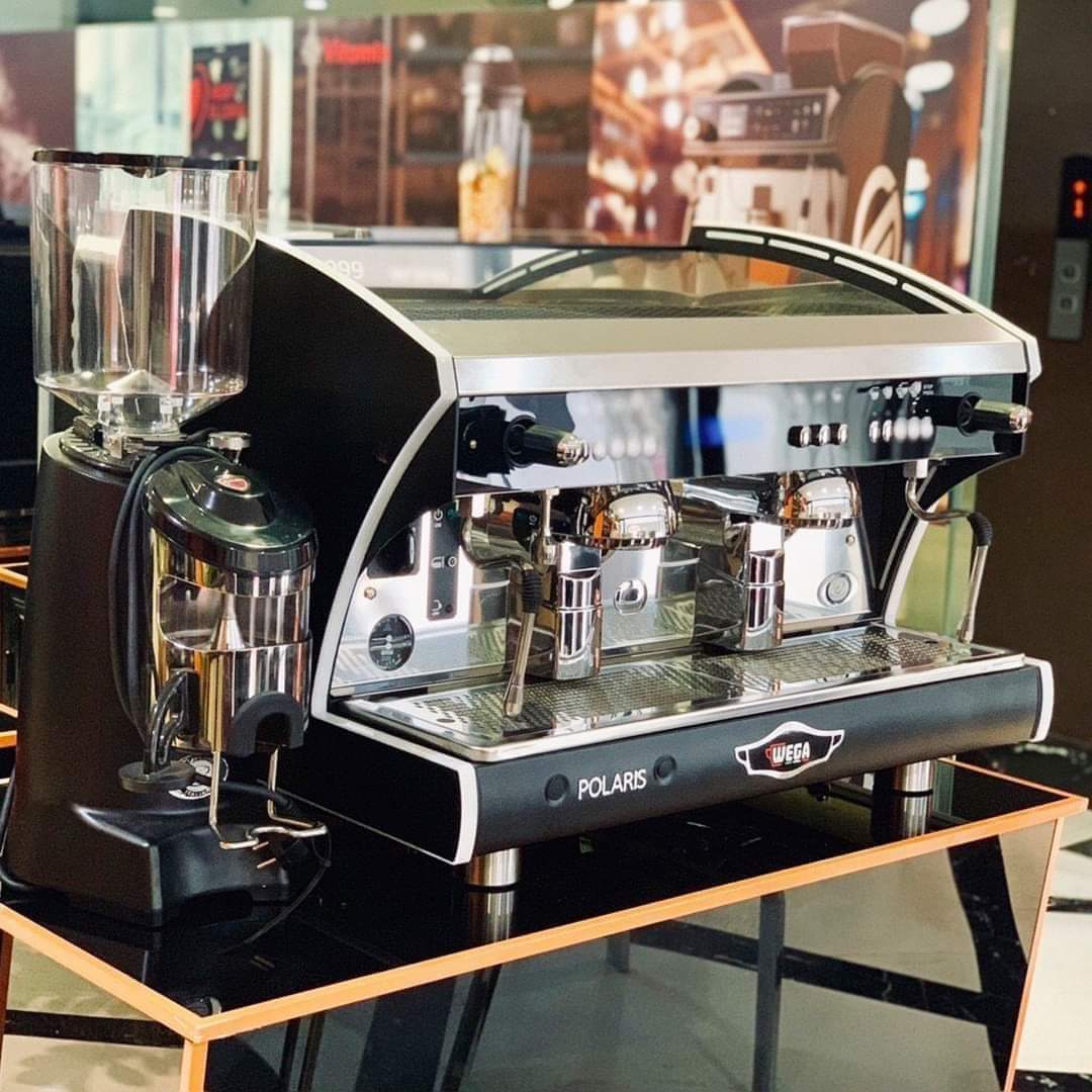 - Các phím bấm trên Wega Polaris bố trí riêng cho mỗi group head tạo nên sự chuyên nghiệp, độc lập. Năm phím bấm EVD tượng trưng cho từng lượng nước phù hợp với ly đôi, ly đơn hỗ trợ barista thao tác nhanh hơn và prog stop để cài đặt.