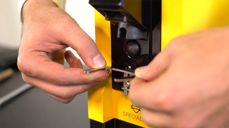 Tay cầm (handle) có thể có nhiều kích thước khác nhau, đặc biệt là chiều cao tùy máy pha cafe. Khoảng cách từ máng trút cafe bột đến kẹp đỡ là 5.7cm. Cải tiến mới “Hands-Free” cho phép người dùng có thể thay đổi khoảng cách của kẹp đỡ tay cầm trong khoảng 1cm để tương thích với tay cầm cà phê. Từ đó sử dụng thêm chức năng xay tự động mà không cần giữ tay cầm, barista có thể rảnh tay trong lúc pha cafe.