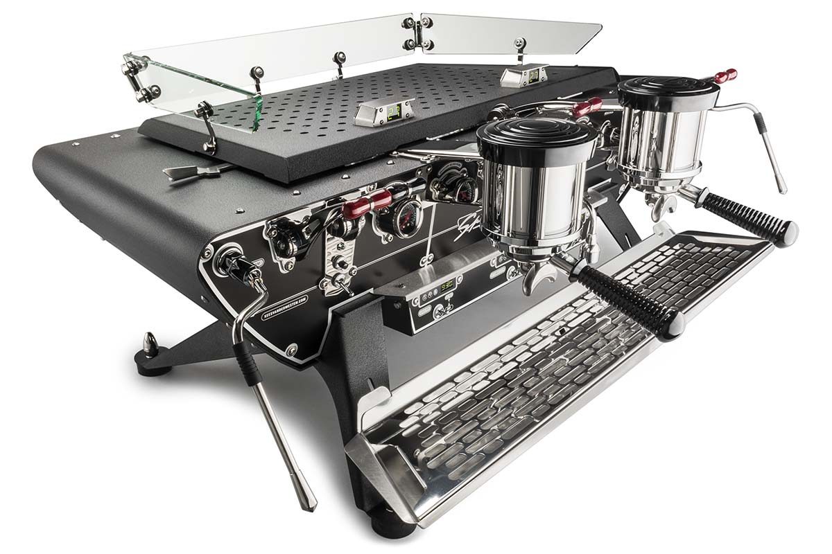 Ở phiên bản máy pha cà phê cao cấp Kees van der Westen Spirit Triplette, máy có hai group bên ngoài sử dụng cần đẩy và 1 group giữa dùng bàn phím điều khiển.