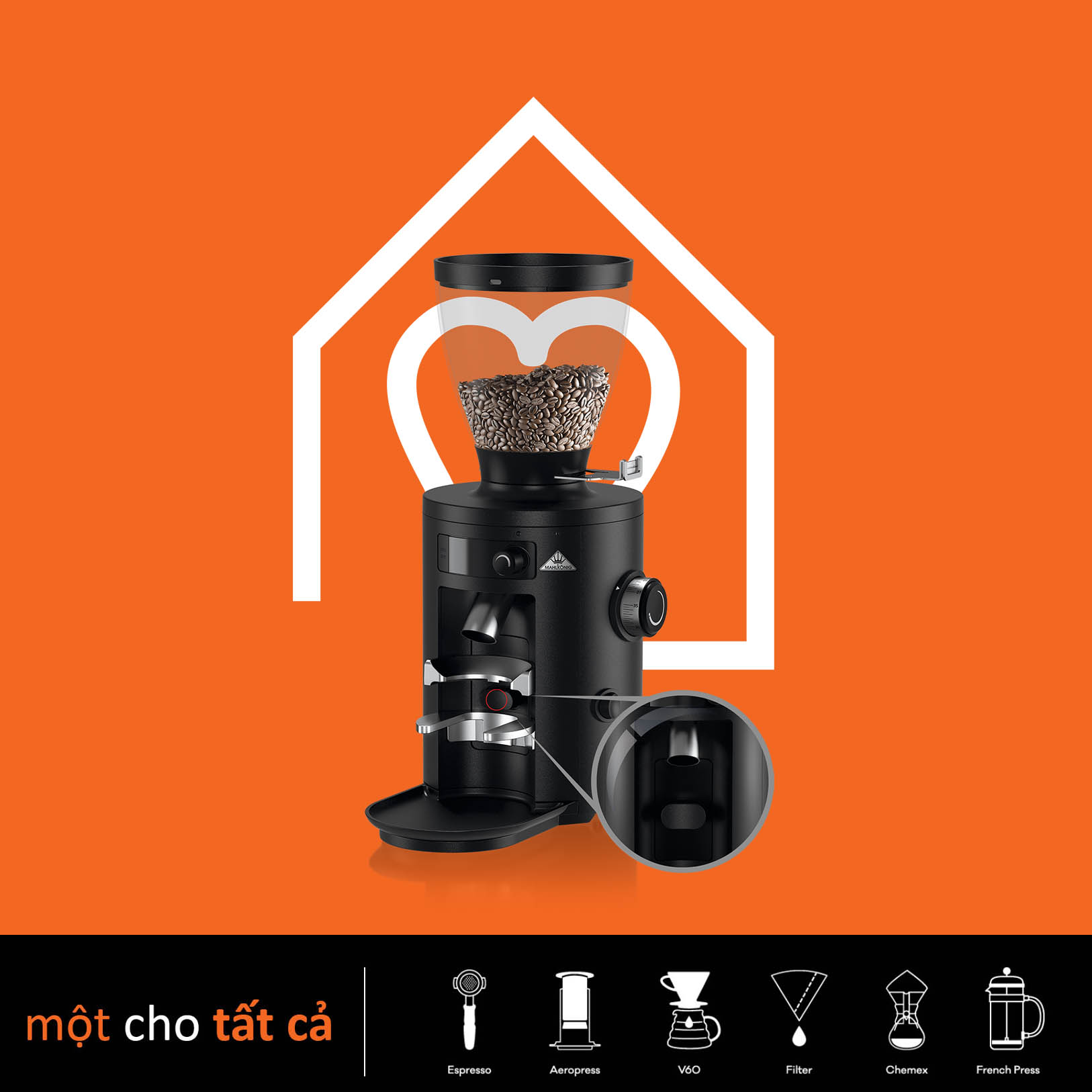 Máy xay Mahlkönig là bảo chứng cho sự đầu tư về chất lượng quầy pha chế của các quán cà phê trên khắp thế giới. Nếu nói máy xay cà phê chuyên nghiệp Mahlkonig EK43 đã trở thành biểu tượng tiêu chuẩn đối với dòng máy xay thương mại, thì Mahlkonig X54 được thương hiệu Vua máy xay tạo ra với mục đích trở thành tiêu chuẩn cho dòng máy xay cà phê gia đình.