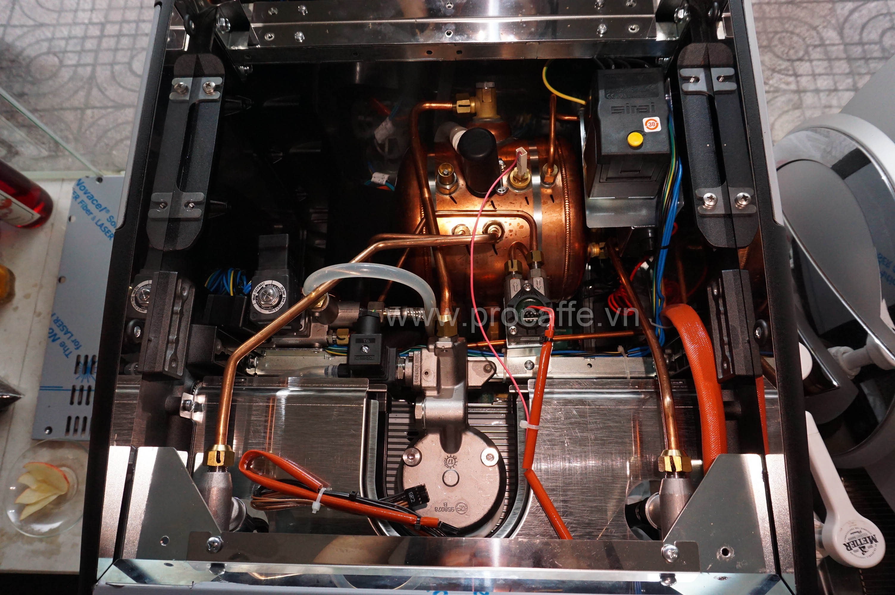Ốp dưới khay nước giúp chống chuột làm hư hỏng các bộ phận bên trong. Ốp này được thiết kế rất chắc chắn nhưng lại dễ dàng tháo lắp. Máy Casadio Dieci không có chi tiết này.