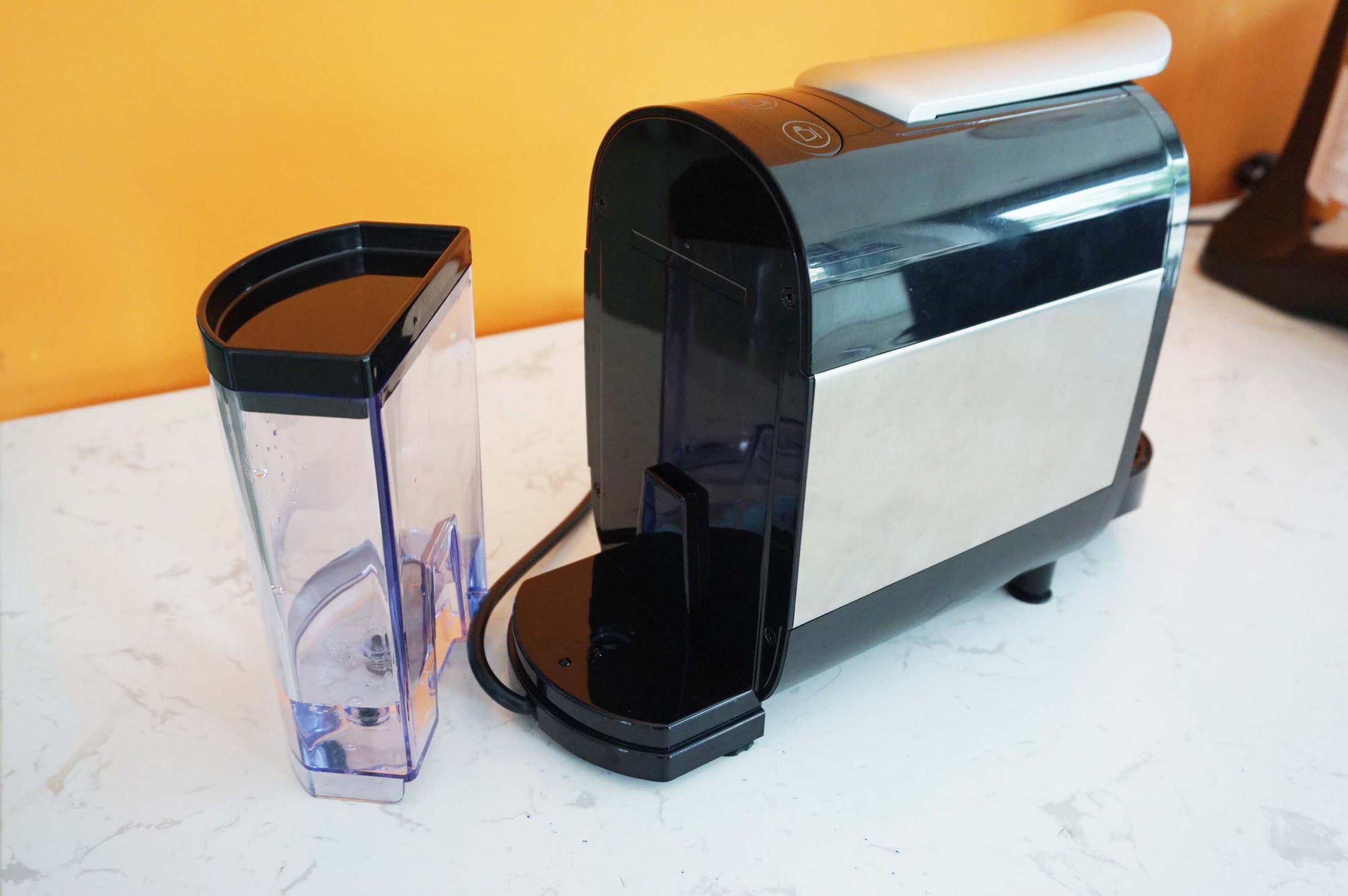 Với công suất 1400W/230V, máy có thể nhanh chóng chiết suất cafe espresso thơm nóng chỉ trong 25 giây (xem video tại đây). Hộc chứa nước có thể tháo rời, dung tích lớn 700ml đủ để pha 10 tách cà phê cho cả văn phòng nhỏ của bạn.