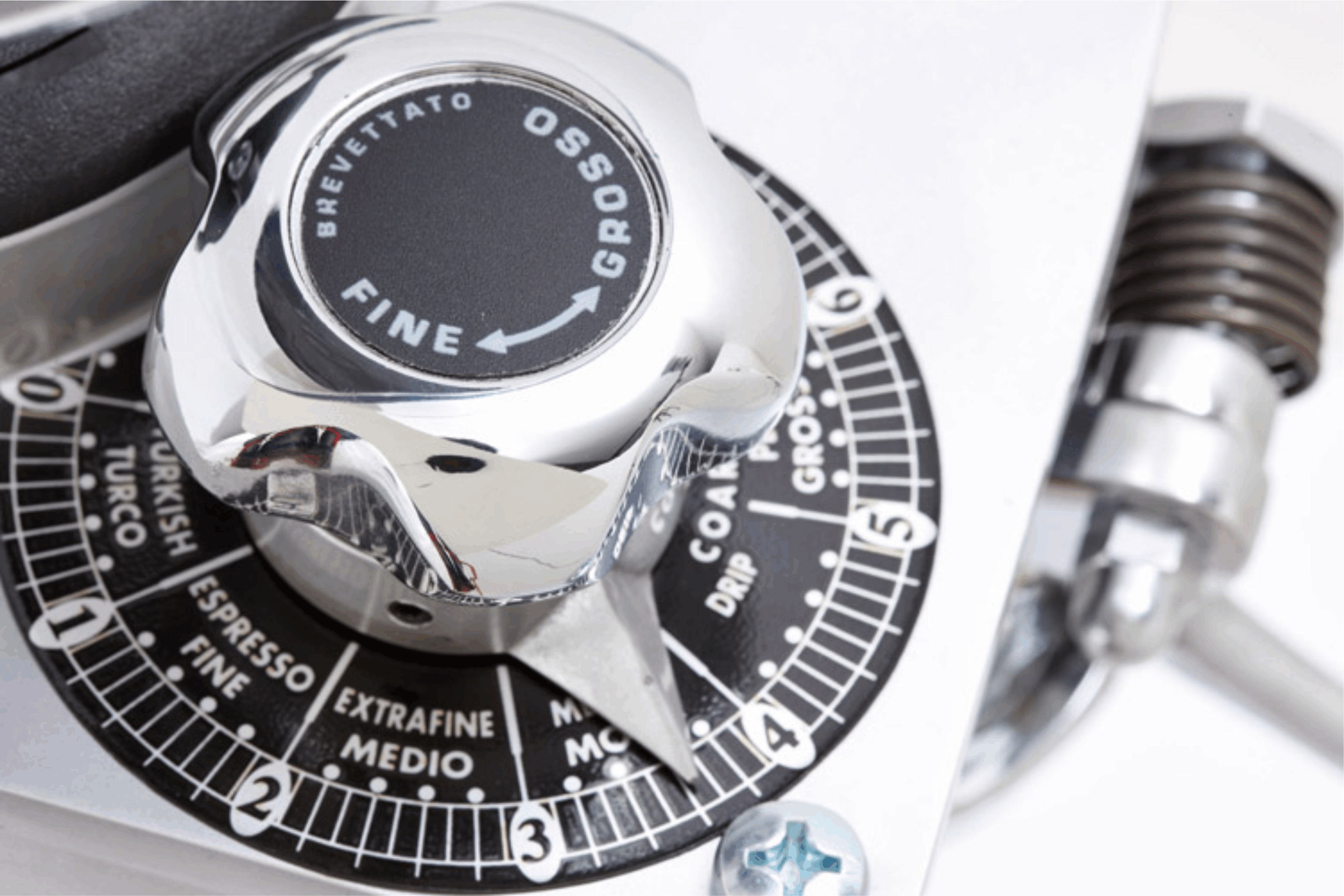 Đây là công nghệ ưu việt nhất của Eureka mà các máy xay cà phê mức giá tầm trung khác như Fiorenzato, Cunill..không có được. Máy xay cà phê thông thường, núm vặn chỉnh độ mịn thường có thông số như 0, 1,…,4, 5. Barista chỉ có thể xoay chỉnh độ thô mịn bột đúng tại các khấc này – mà có khi, điểm đó chưa chắc là điểm xay được kích thuốc tối ưu để làm ra tách cà phê ngon nhất.