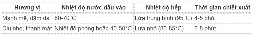 - Nhiệt độ bếp: Giữ lửa nhỏ (khoảng 80-85°C) để quá trình chiết xuất diễn ra chậm rãi.